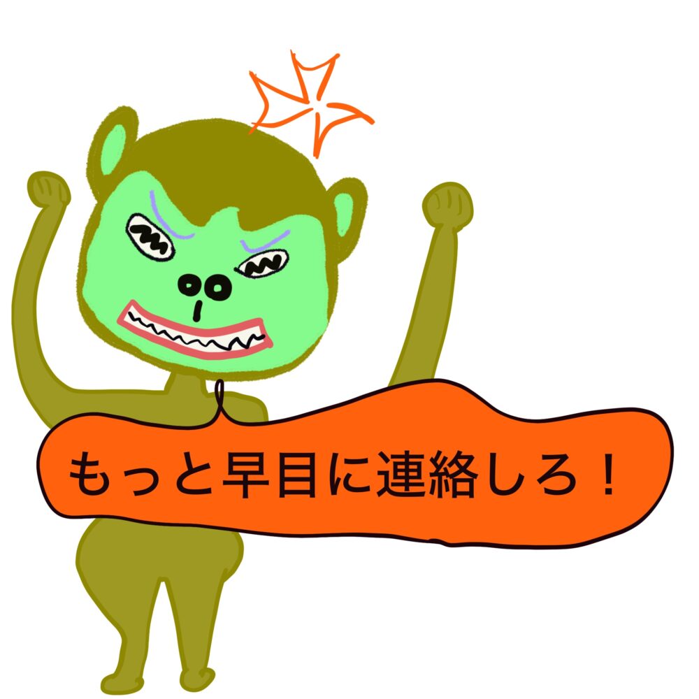 親がLINEをよこしたタイミングは30分遅かったので、サルの時間がその分無駄になった。本当に必要な待ち時間なら仕方ないが、親がLINEを早目によこさないからと激怒した。