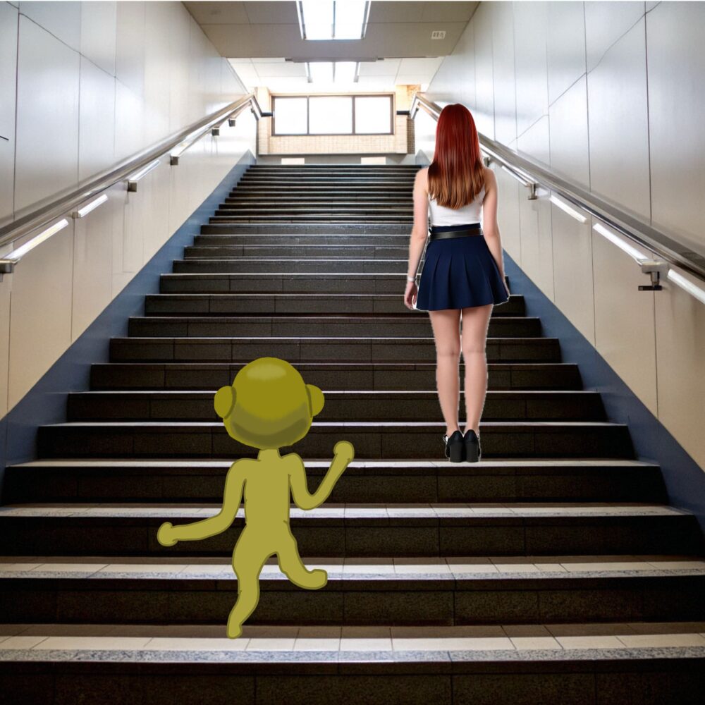 道路脇に地下鉄入口があった、超ミニスカートの女子が入って行くのを2人で目撃した