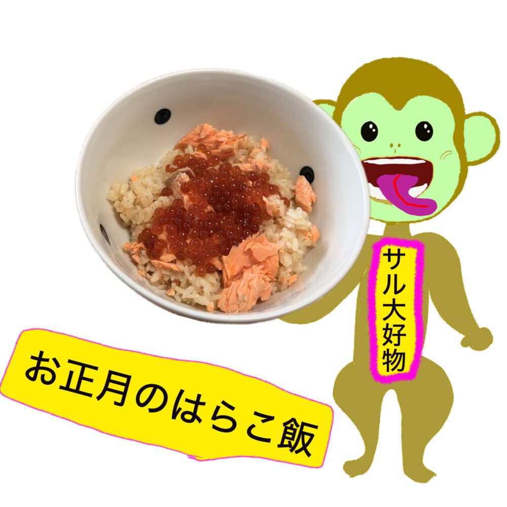 HOME夫婦の日常おうちご飯 お正月は幸せスタート 2026年1月3日 おうちご飯 目次 [ open close ] 大好物のはらこ飯 大好物のはらこ飯 いくらの処理もウサウサだから味付けもバッチリなんだよ。お米もカルガモの無農薬だからサルは年々健康になる 天然の猫キャラ 「は〜い」恥ずかしいインターホン実験