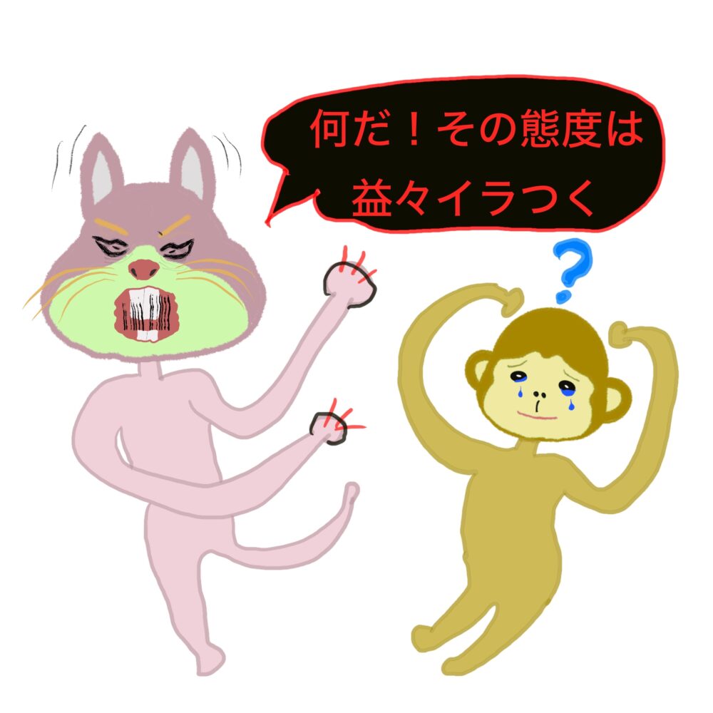 何かウサウサのカンに触るサルは叱られる