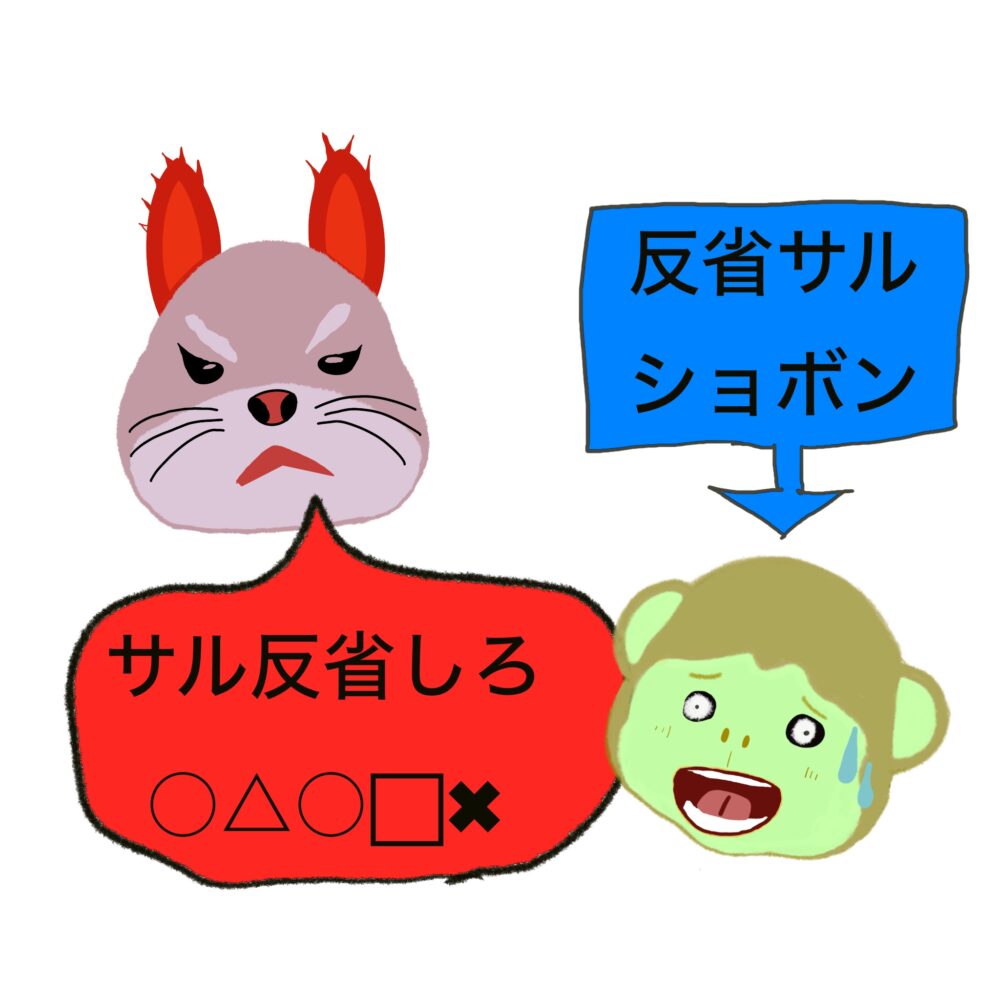反省したにも関わらず更に叱られるサル
