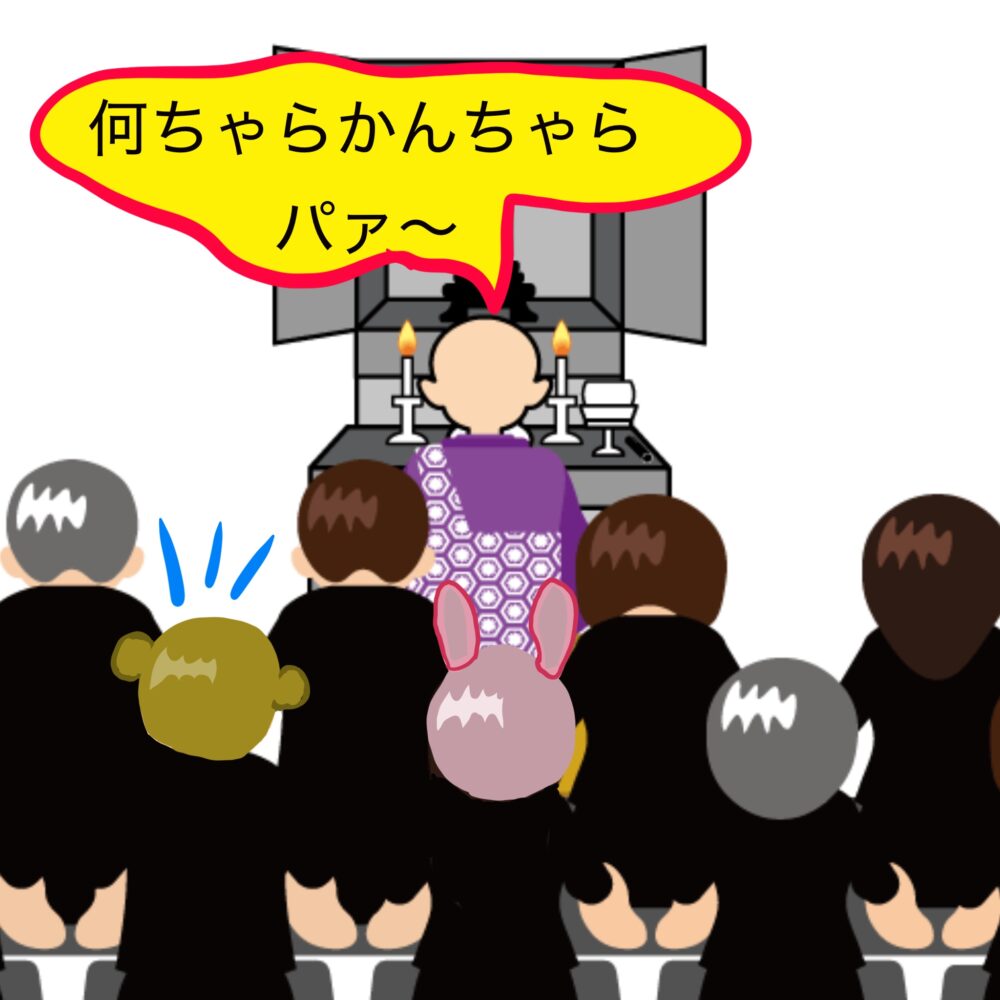 お坊さんがお経あげてる時は、最後まで聞けるか五分五分なのだ