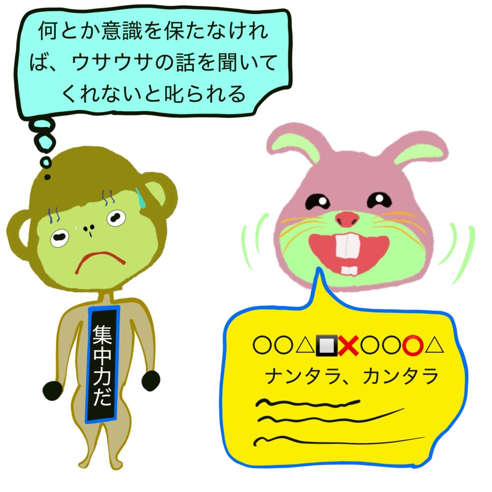 機関銃の様に沢山話すウサウサにサルの頭はフリーズ